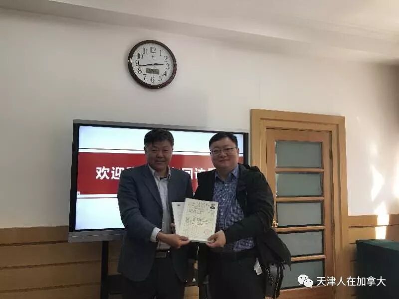 最后,张彤副校长与陈欣主任向张捷副会长赠送了纪念品,并通过张捷转达向王培忠会长以及全体天医加拿大校友的问候。